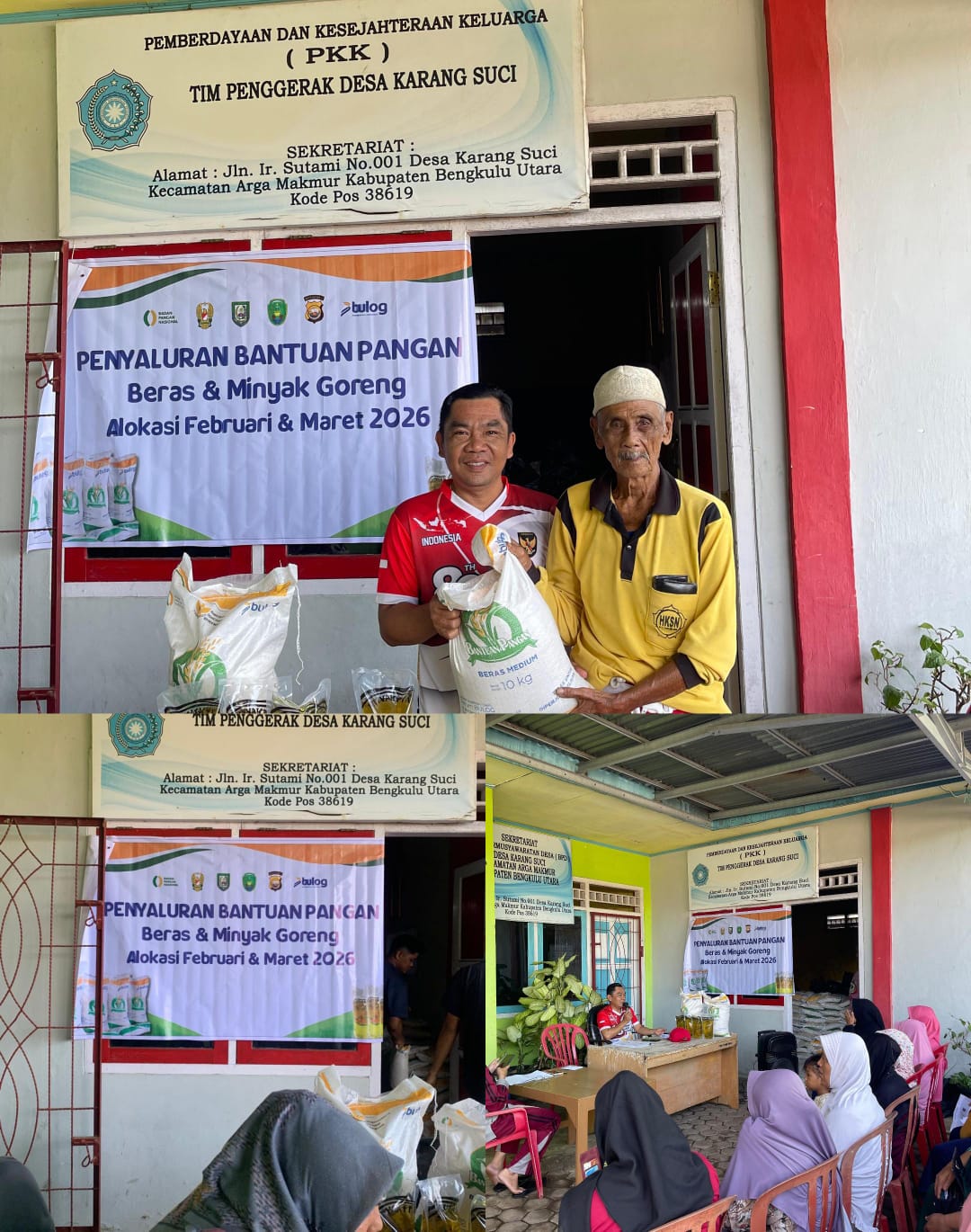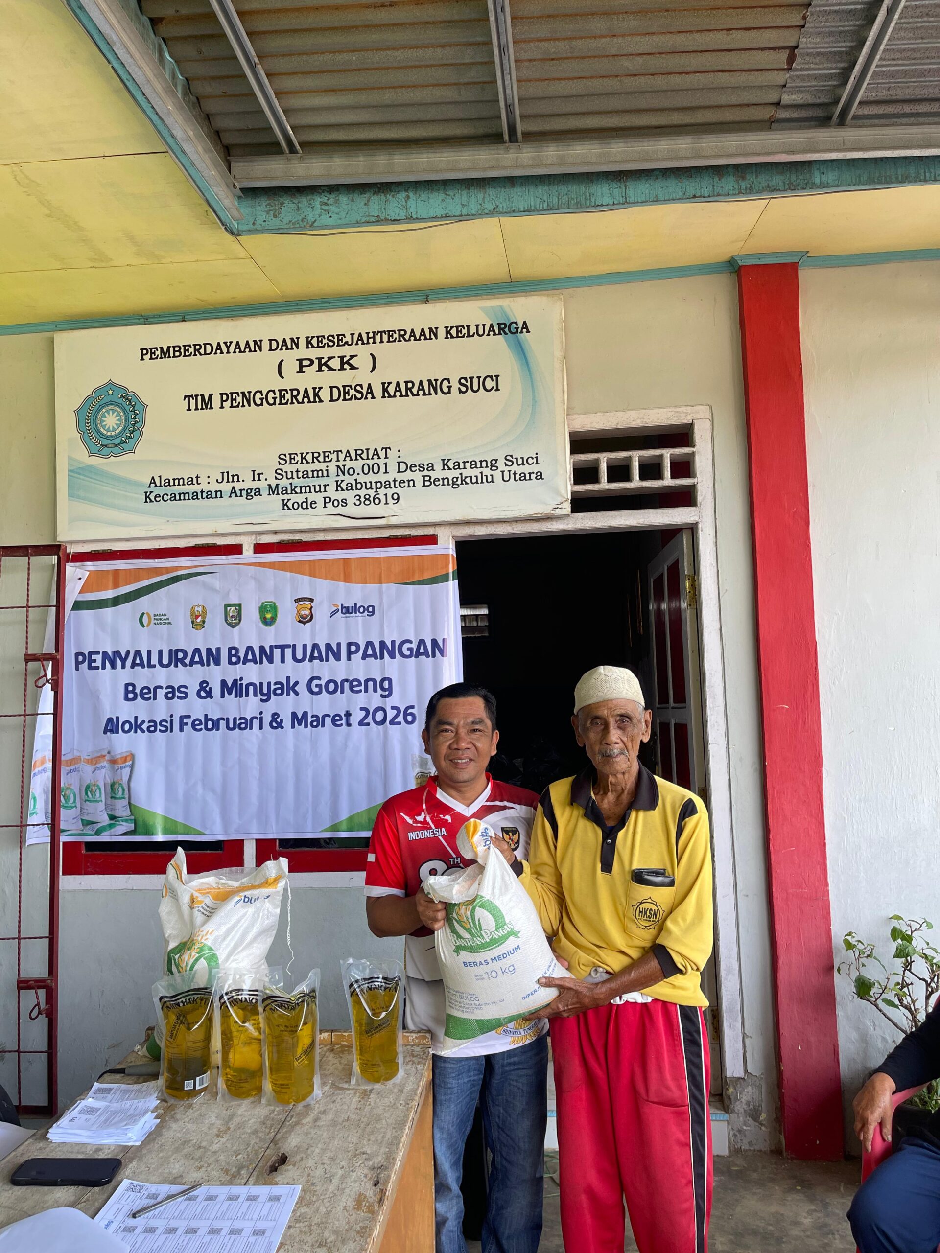 Kepala Desa Karang Suci Febzon , menyampaikan bahwa bantuan ini diharapkan dapat meringankan beban masyarakat dan membantu pemenuhan kebutuhan pangan. “Kami bersyukur penyaluran bantuan dapat berjalan baik dan tertib. Terima kasih kepada seluruh perangkat desa dan warga yang telah bekerja sama menjaga kelancaran kegiatan ini,” ujarnya.