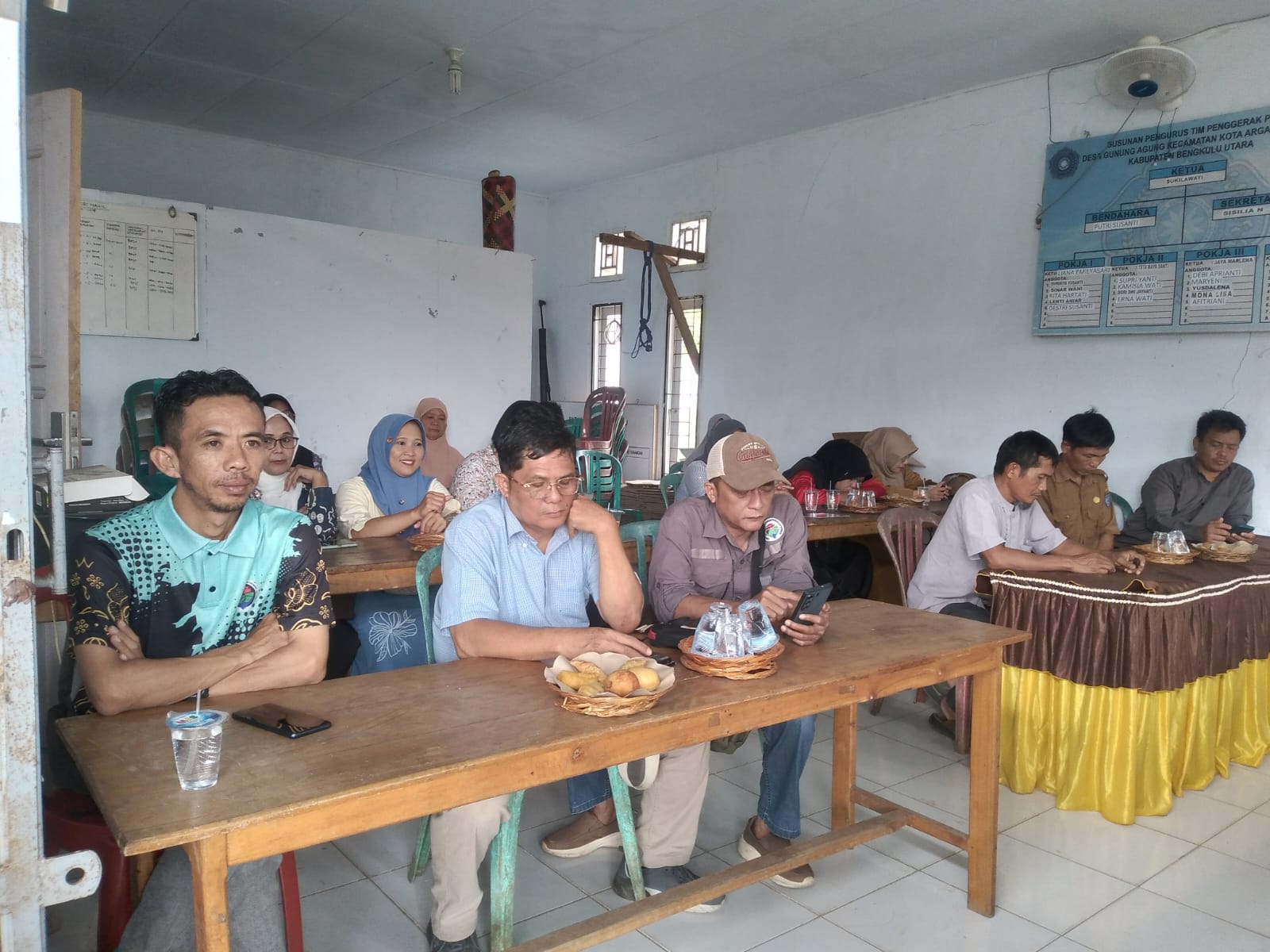 Rapat prapelaksana kegiatan dan Pembagian BLT DD, desa Gunung Agung Dihadiri, Camat kota Arga makmur, yang diwakili oleh kabid Pemdes, Bhabinsa, Bhabinkamtibmas, BPD, Pendamping desa dan Penerima KPM, Tutup Kades. (ADV)